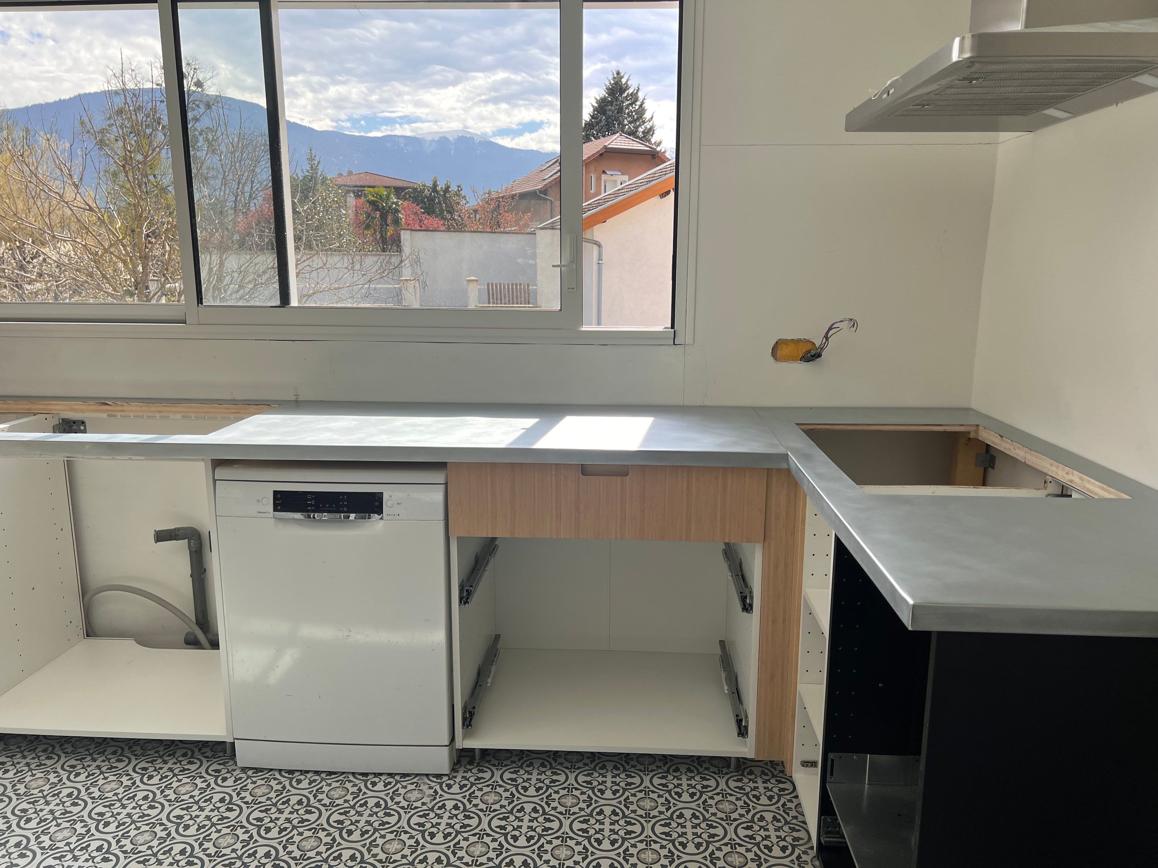 Un plan de travail en zinc, réalisé entièrement sur mesure pour cette cuisine