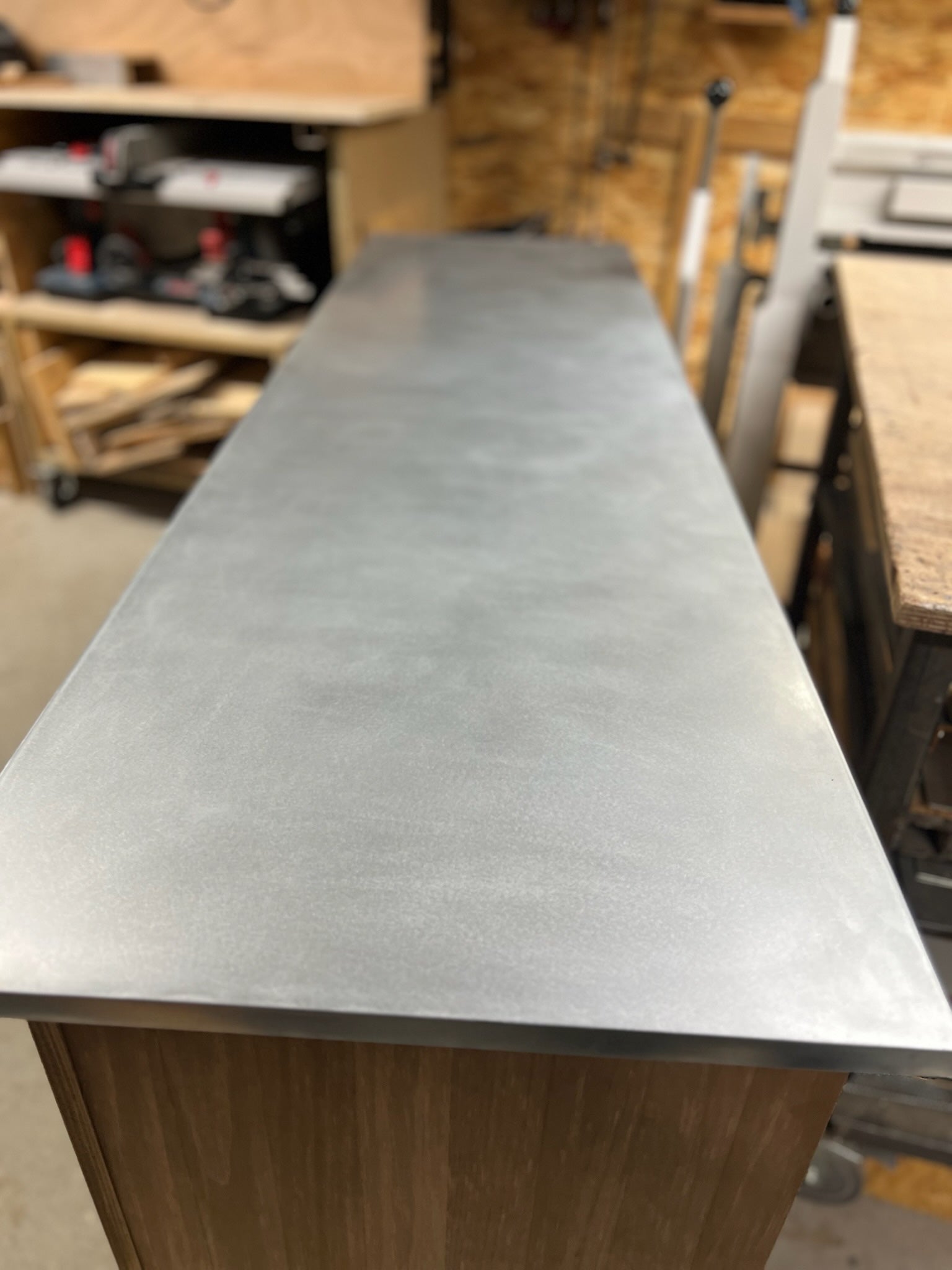 Pourquoi un plateau en zinc ?  Le zinc est une matière noble et résistante (10 fois plus résistant que du chêne), facile d’entretien, anti-microbien et durable, il offre de nombreux avantages.