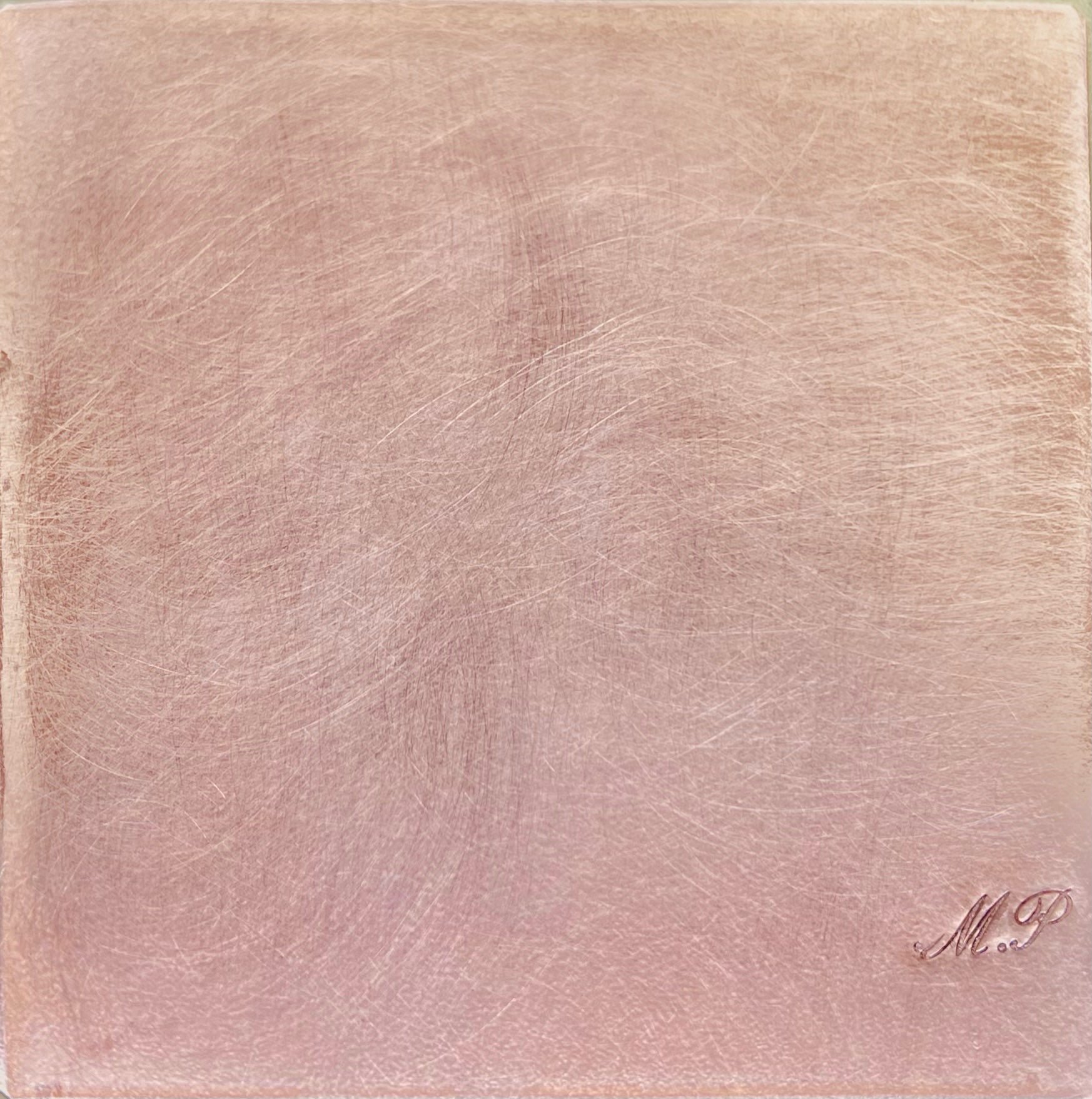 Cette finition permet au cuivre d’obtenir un aspect doux et chaux au touché tout en éliminant les reflets et la brillance.